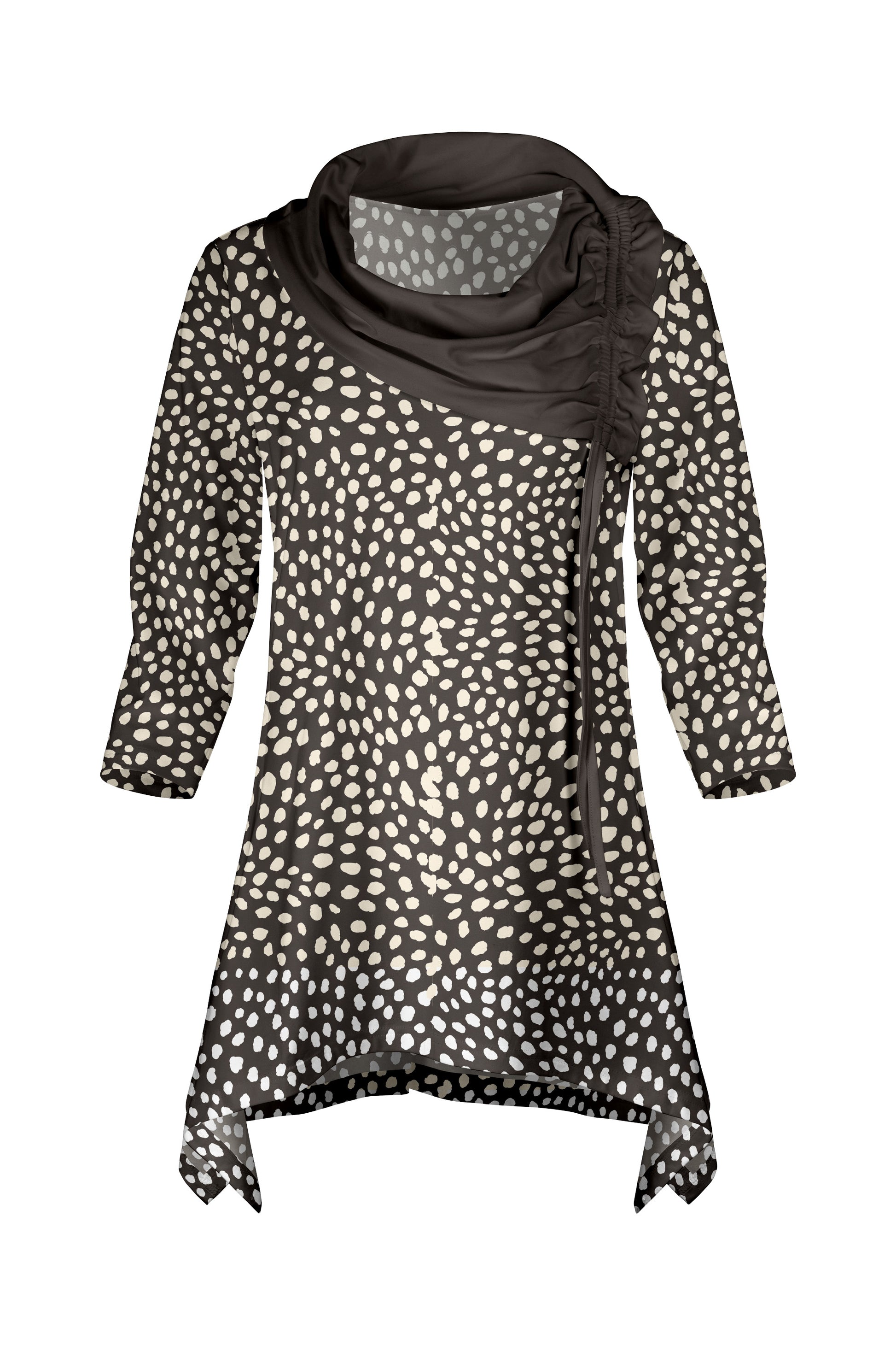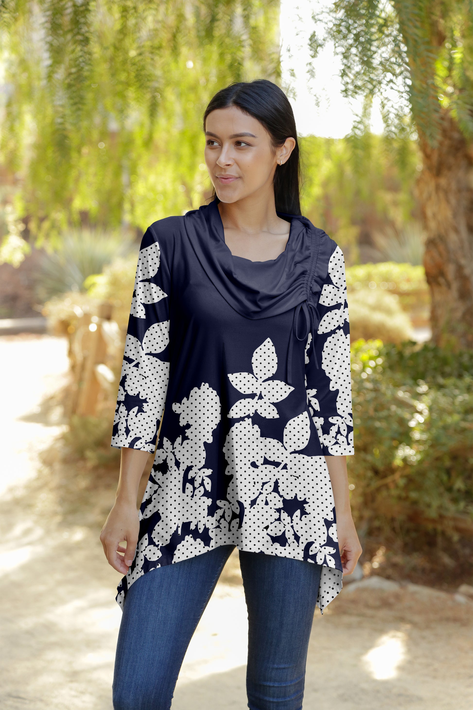 Make a statement with this bold tunic featuring strong contrast collar that stand out against the body. Made from a soft and stretchy knit blend of 95% polyester and 5% spandex, it combines comfort with eye-catching style. Perfect to pair with leggings or jeans for a confident everyday look.