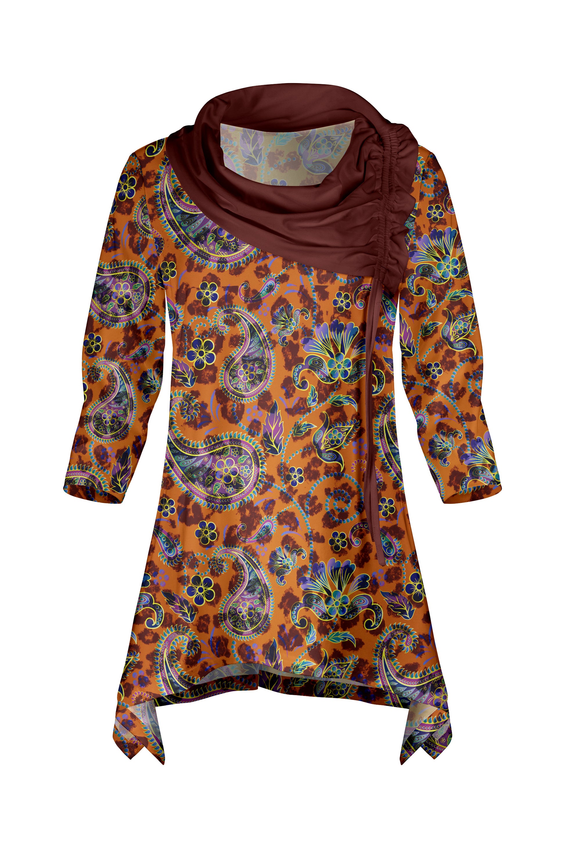 Bold Contrast Collar Tunic-Orange Yellow Multi