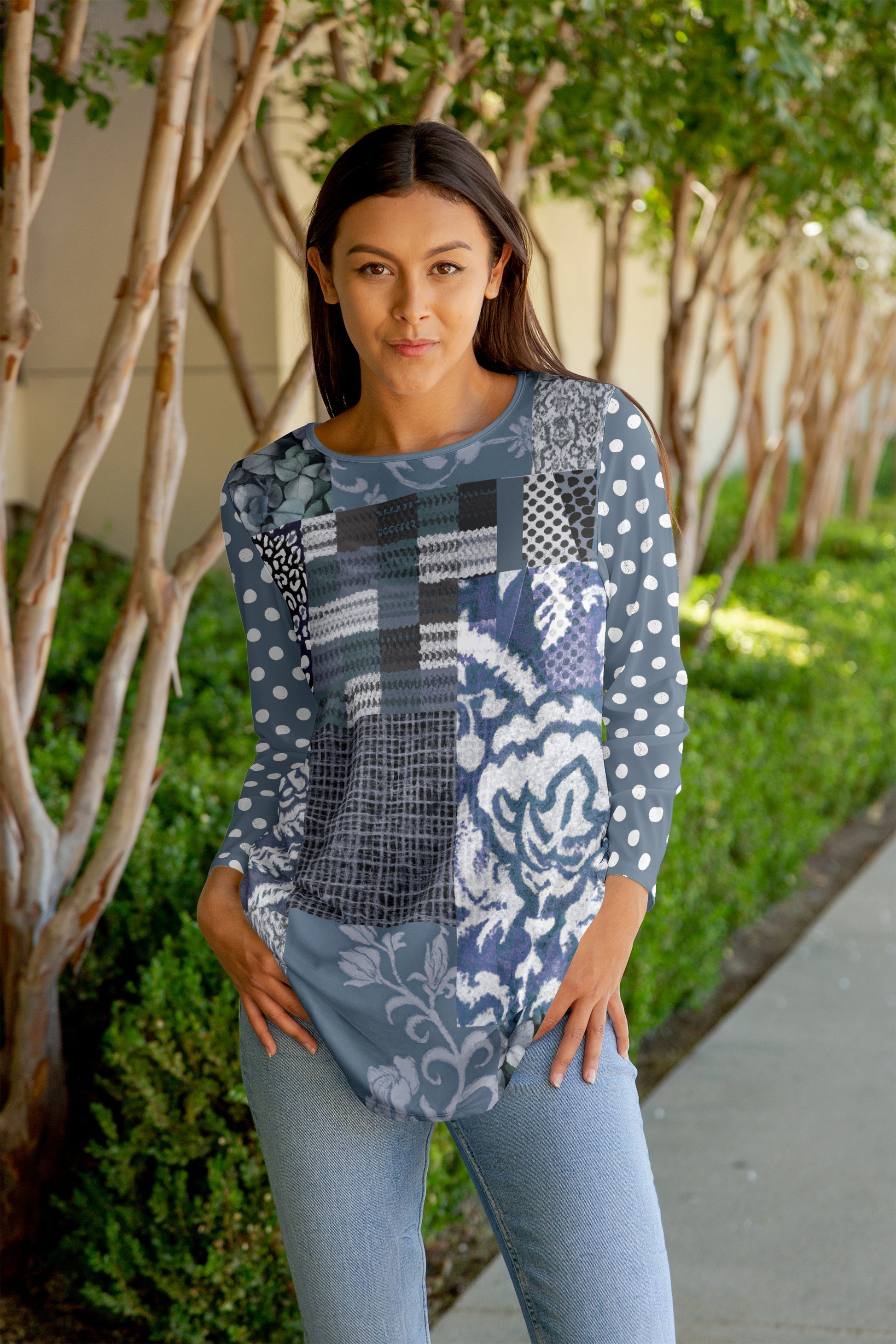 - Patterns: Because each garment is individually crafted, the pattern placement may be slightly vary from the product image.