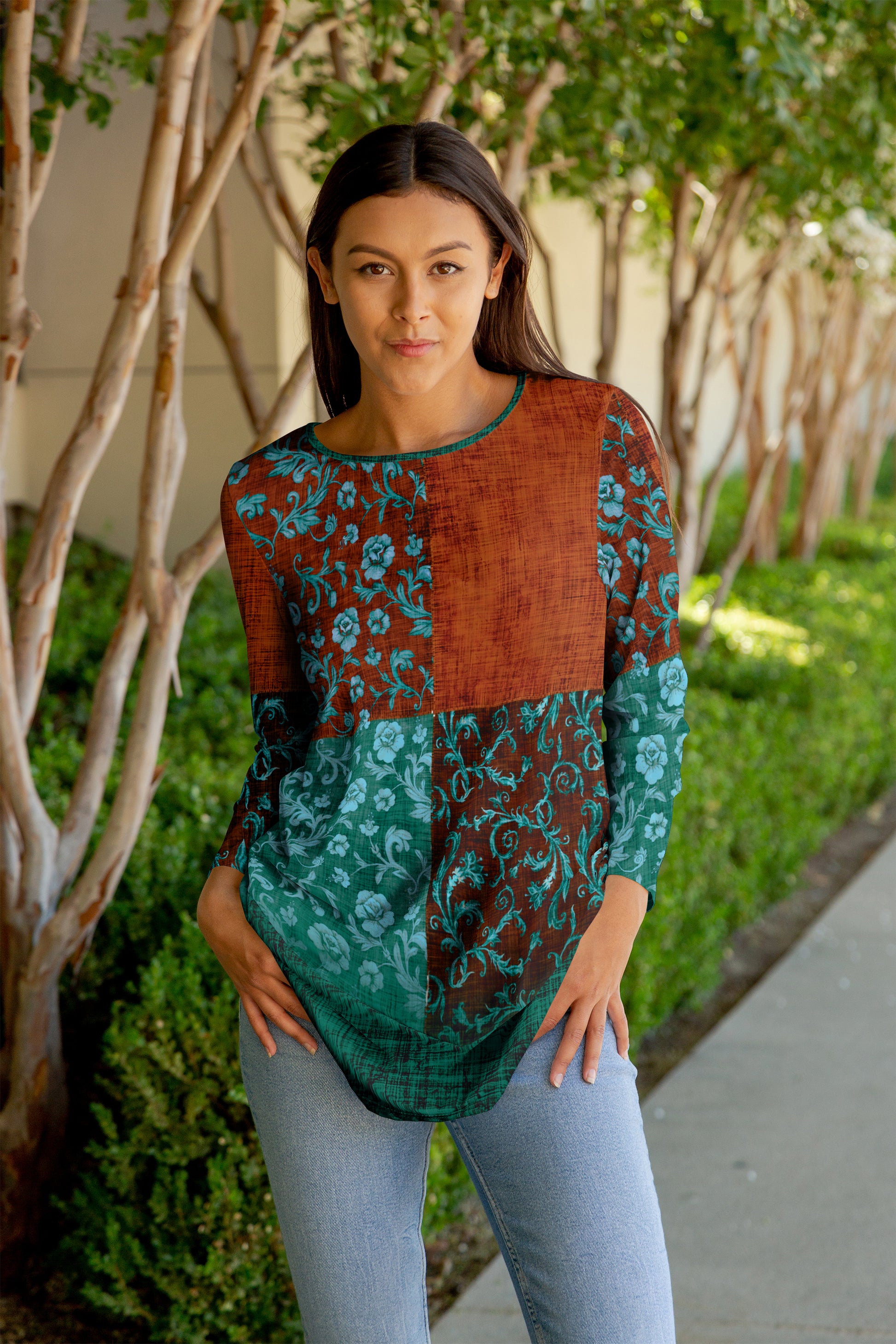 Bold Print Flowy Tunic-Brown Beige